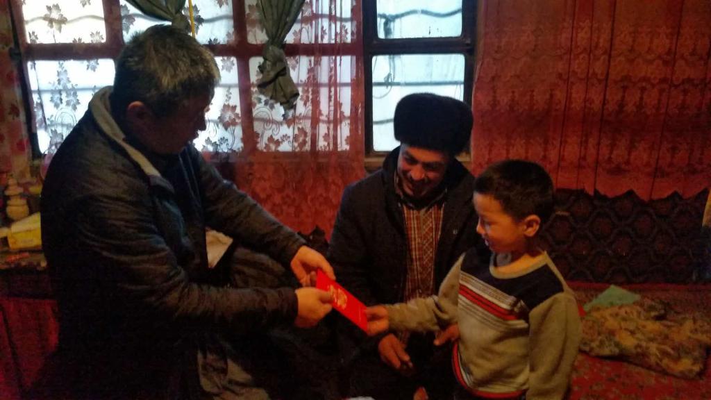 2月19日,公寓管理中心主任张玺、维吾尔医学院副院长库尔班·艾力、图书馆赵作荣书记和工程技术学院的王光磊走进了亲戚阿卜杜合力力·阿巴斯的家,为亲戚一家送上春节的美好祝福。