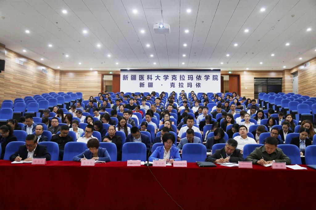校党委书记高发水在校本部临床教学楼800人会议室主持会议并讲话,自治区教育工委督导组领导、全体校领导、第一临床医学院处级以上干部、支部书记、委员、党务干部、机关科级党员干部,各临床医学院党政正职及学工党务干部在主会场参会;各临床医学院、克拉玛依学院处级以上干部、各单位所属党总支、支部书记、委员、党务干部及各单位机关科级党员干部在各附属医院、克拉玛依学院六个分会场参会。