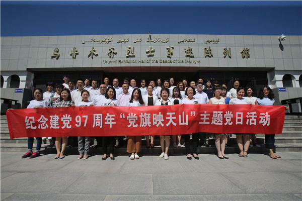 7月6日,beat365在线唯一官网机关党委组织机关党员干部50余人到乌鲁木齐市烈士陵园开展“党旗映天山”主题党日活动,旨在进一步增强革命历史和革命传统教育,激发党员干部不忘初心、牢记宗旨和爱国爱党热情,弘扬爱国主义精神。