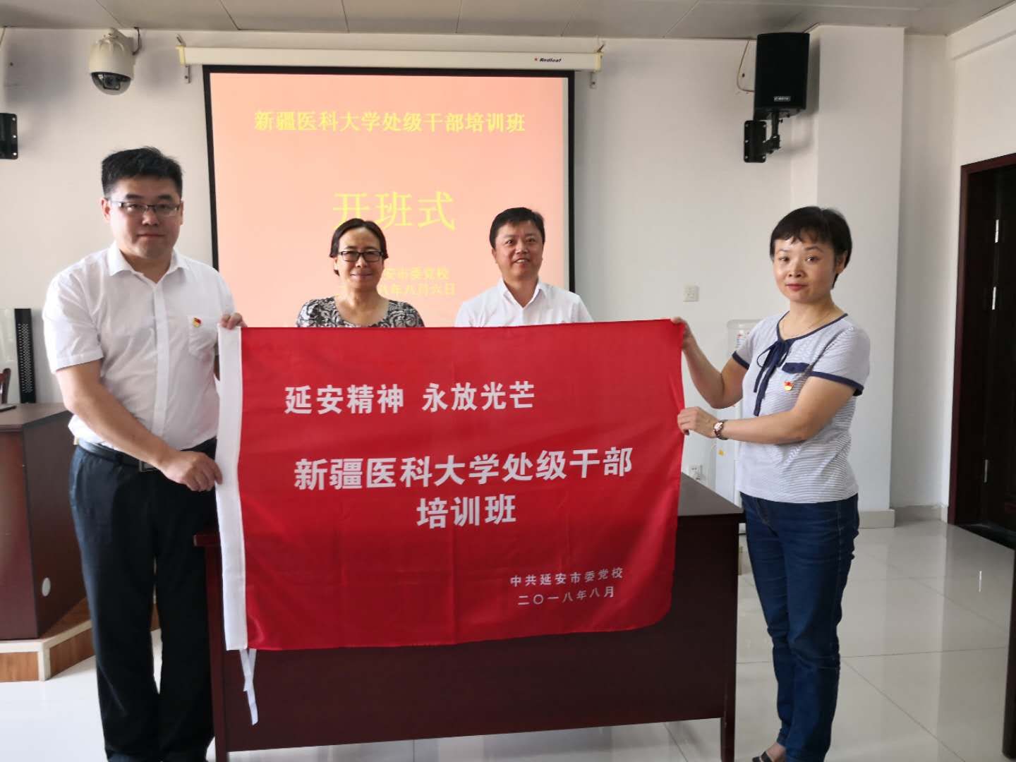 开班仪式还对beat365处级干部培训班授"延安精神永放光芒"的班旗。