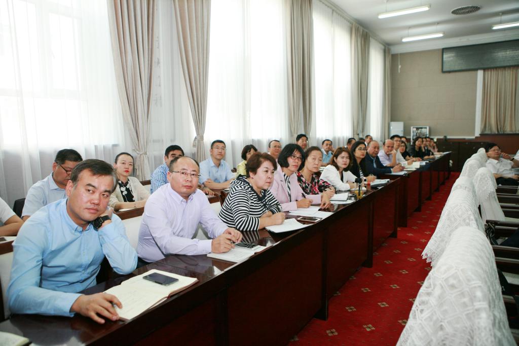 校领导凯赛尔·阿不都克热木、贾文霄、姚文兵、赵翠芳、李豫凯,和各职能部门负责人、各学院书记、院长和主管教学的副院长、专家组联络员及评建办工作人员参加了会议。会议由副校长姚文兵主持。