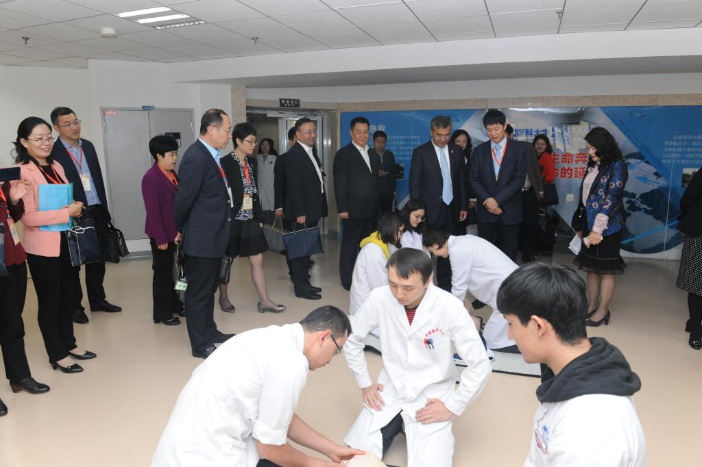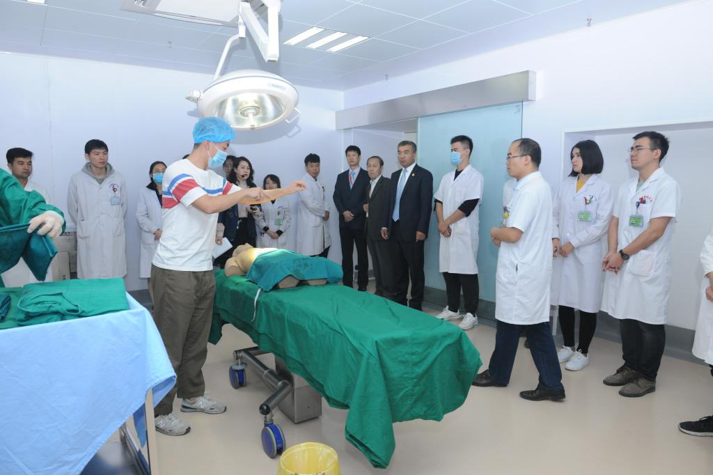 今天上午,专家组一行来到beat365在线唯一官网第一临床医学院临床技能培训中心(模拟医学培训部),实地查看了本科生临床技能培训情况。专家组一行参观了技能培训中心、模拟培训部、模拟门诊、模拟手术室、微创技能培训部、模拟病房、穿刺培训室等临床技能培训场地,并对如何更好的做好临床技能培训提出了建议。