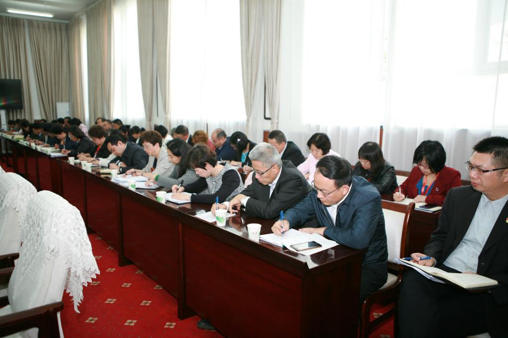 全体在家校领导、各部门负责人、各学院书记、院长、教学副院长、联络员及评建办工作人员参加了会议。