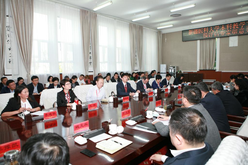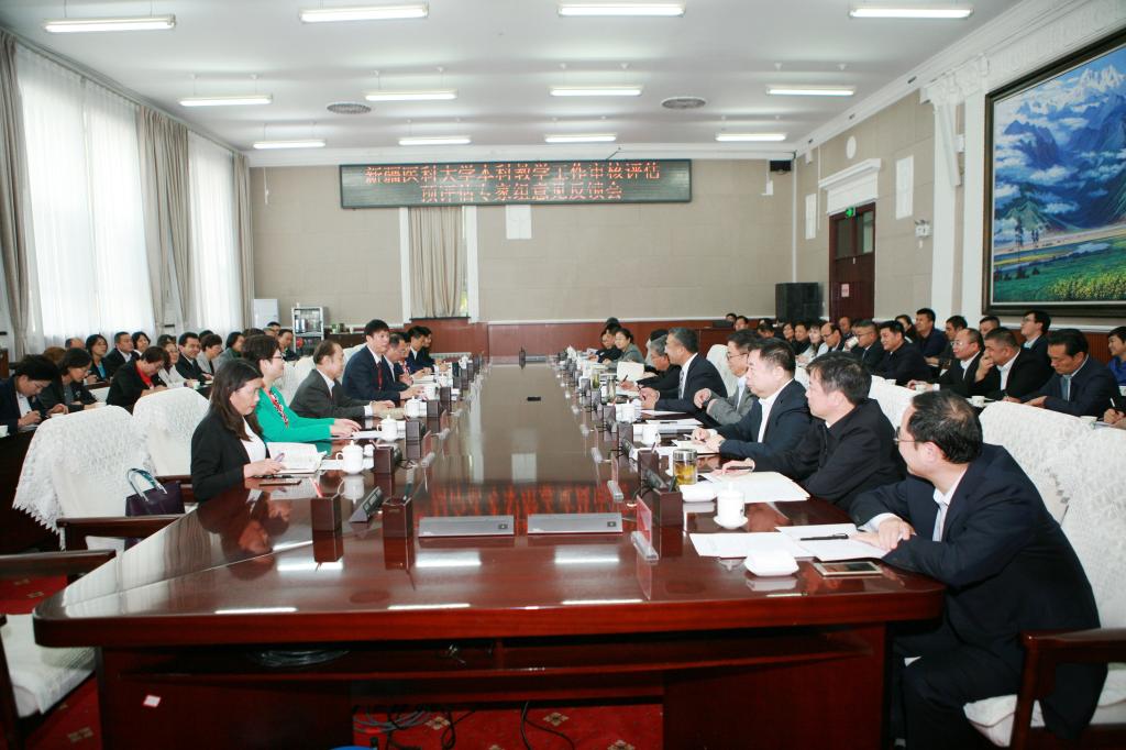 徐州医科大学原党委书记吴永平教授、中国药科大学副校长陆涛教授、天津医科大学原副校长娄建石教授、北京中医药大学教务处处长闫永红教授、南京中医药大学继续教育学院院长文庠教授、山西医科大学教务处处长张岩波教授和广州医科大学教务处处长李建华教授等七位专家分别向学校反馈了预评估情况和个人意见。校党委书记高发水,校党委副书记、校长凯赛尔·阿不都克热木参加会议并做表态发言。