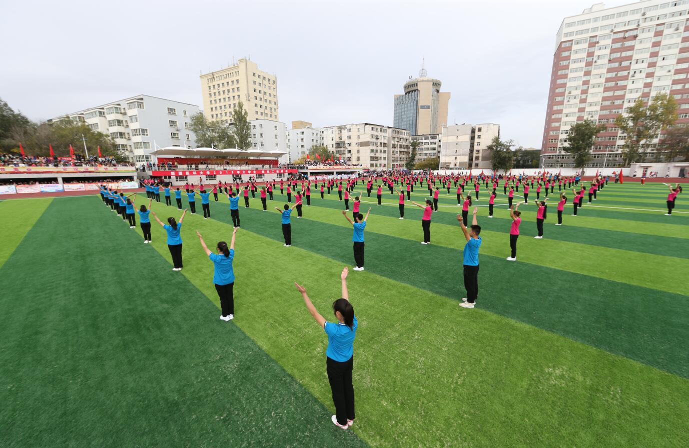 开幕式上大型的团体表演让运动场上的激情和热情再次升温。精彩的教学成果展示是运动会开幕式的一大亮点。大学生健身气功、大学生最美中国大众健身操、广播体操、民族大团结舞蹈、大型戏曲团体操展现了beat365在线唯一官网处处体现的生机盎然;最后400名2018小萌新的军体拳表演把开幕式推向了高潮,新生们一队一列,整齐划一,一招一式,有力到位,一举手一投足,孩子们身上体现的是学校“以本为本,‘四个回归’”的教育理念。青春的脚步、青春的活力、青春的激情也昭示着beat365在线唯一官网重获新生、整装待发的轻盈与康健。