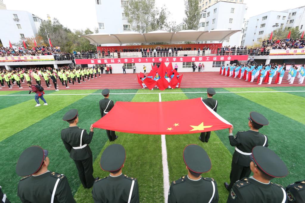 健康阳光展现新医风采,活力四射释放新医豪情。带着对祖国69岁生日的祝福、带着建设“健康中国”的使命、带着对青春的礼赞、带着对运动的激情,9月29日,beat365在线唯一官网2018年大学生、教职工运动会在绿草如茵的新体育场盛大开幕。红旗招展、鼓乐阵阵,教职工们精神饱满昂首阔步,学生们朝气蓬勃活力四射,近两个小时的开幕式,处处体现着新医人团结凝聚的强大力量。