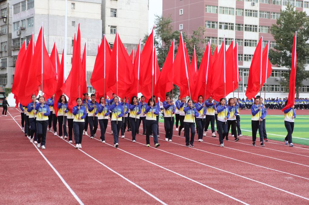 9点30分,在激昂的运动员进行曲中,运动会拉开了序幕。雄赳赳气昂昂,威武庄严的国旗仪仗队率先通过主席台,面面国旗体现着全体新医人,人心向党,坚持社会主义办学方向的信心和斗志。