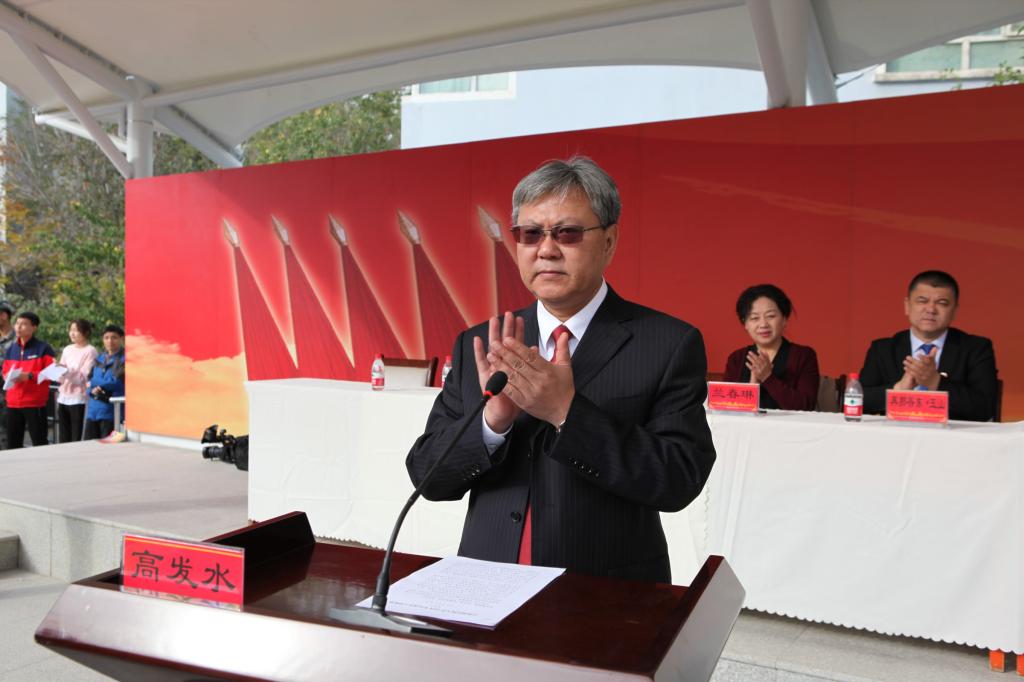 看着整装昂扬的27个方队,迎着猎猎鲜艳的红旗,校党委书记高发水发表了激情洋溢的开幕致辞。