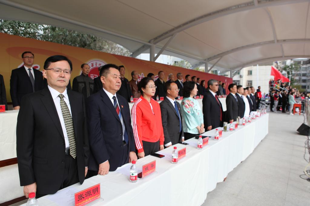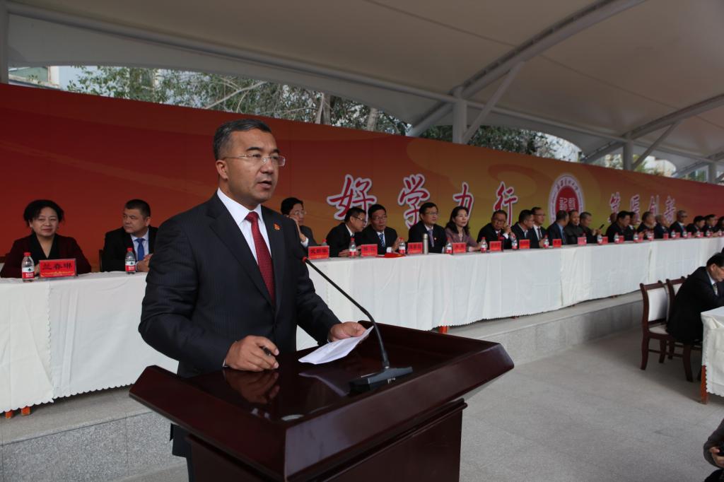 校党委副书记 、校长凯赛尔·阿不都克热木主持开幕式。在家的全体校领导正装出席,长久站立,对全体教职工和同学们表达着隆重的敬意。