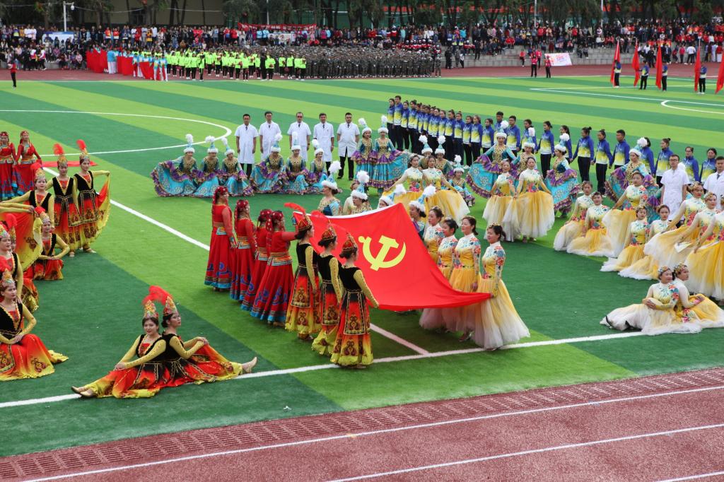 每一个方阵都是一团耀眼的火焰,每一个方阵都是移动的新医力量。医学工程学院各民族服饰代表队,体现着新医这个大家庭的团结和谐;语言文化学院举着“好学、力行、笃医、创新”的校训缓缓走来,旗袍、剪纸、书法元素,展现了语言文化学院优秀的传统文化基因;附中孩子们鼓舞气势的鼓号队,让大家看到了新医的未来和希望;活力、青春、健康、快乐,27个方阵浓缩成了新医大和谐美好的家庭画卷;激情、拼搏、奋斗、协作,27个方阵凝结成了beat365在线唯一官网这艘医学教育航母乘风破浪的磅礴力量。