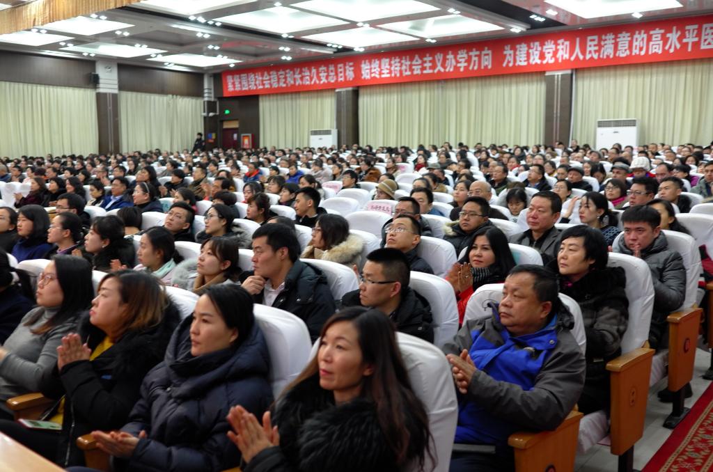 受自治区党委组织部委托,校党委常委、副校长、一附院院长贾文霄宣读了自治区党委、自治区人民政府干部任免决定:曹忠明同志任校党委副书记,免去副校长职务;赵翠芳、李勇生、再那吾东•玉山三位同志任校党委常委、副校长。