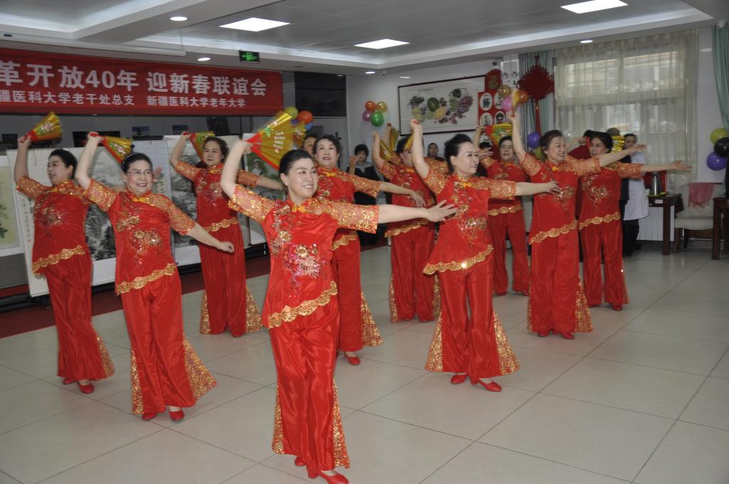 联欢会在雄壮的国歌乐曲声中拉开了序幕,离退休职工全体起立齐声高唱。随后,舞蹈《中国范儿》、歌伴舞《阿瓦古丽》、折扇舞《荞麦花》、古典舞《浏阳河》、藏族舞《我的九寨》舞出了改革开放四十年来的蓬勃发展,反映了广大离退休职工热爱祖国、热爱党,共享美好生活的精神风貌;由原新疆医学院93岁的王士平院长创作的诗歌朗诵《改革开放赞》唱响了全面贯彻党的十九大精神的时代强音,表达了老人家爱党、爱国的矢志不渝和对祖国强盛的赞美;由各族离退休职工集体创作并朗诵的快板书《民族团结一家亲》歌唱了新疆各族人民团结友爱、反对“三股势力”共同发展繁荣,同心共筑美好中国梦的信心;时装秀《美丽新疆春满园》、大合唱《世纪春雨》、 小合唱《我们举杯》、合唱《东方红》、古典舞《浏阳河》、诗朗诵《对衰老的回答》、太极拳《二十四式简化太极拳》、形体舞《火苗》、京剧《麻姑献寿》《梦北京,梨花颂》、折扇舞《荞麦花》等节目精彩纷呈、展现了新时代beat365老年人意气风发、与时俱进的精神面貌。联谊会上精彩的节目使得台下观众的热情掌声迭起;大家纷纷拍照、拍视频留念,记录这精彩的时刻。
