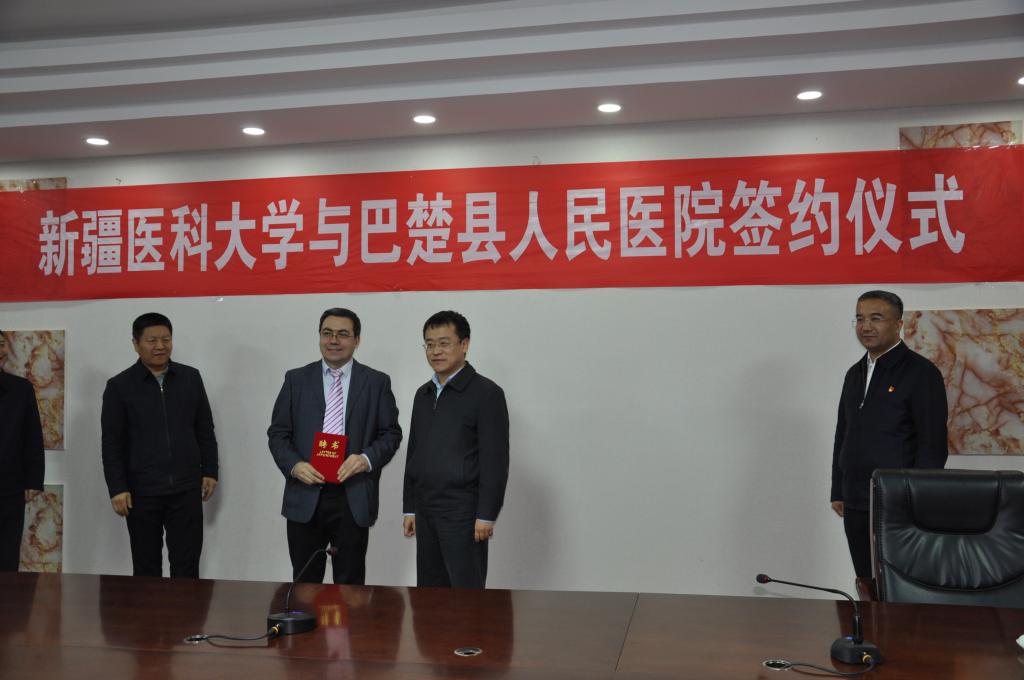 2月21日,beat365在线唯一官网与巴楚县委召开战略帮扶协议签约大会,与巴楚县人民医院达成了战略帮扶协议。beat365在线唯一官网党委副书记、校长凯赛尔·阿不都克热木,校党委常委、副校长贾文霄出席签约仪式。