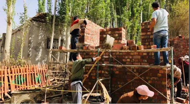 在烈日的照射下大伙忙得汗流浃背,不亦乐乎。图尔迪麦麦提看着新房子激动地说:“村里的新房和花园式的庭院越来越多,感谢党的好政策,让我们每家都住上这么好的房子,过上这么称心如意、有滋有味的生活。如今,感觉生活更有盼头了。”