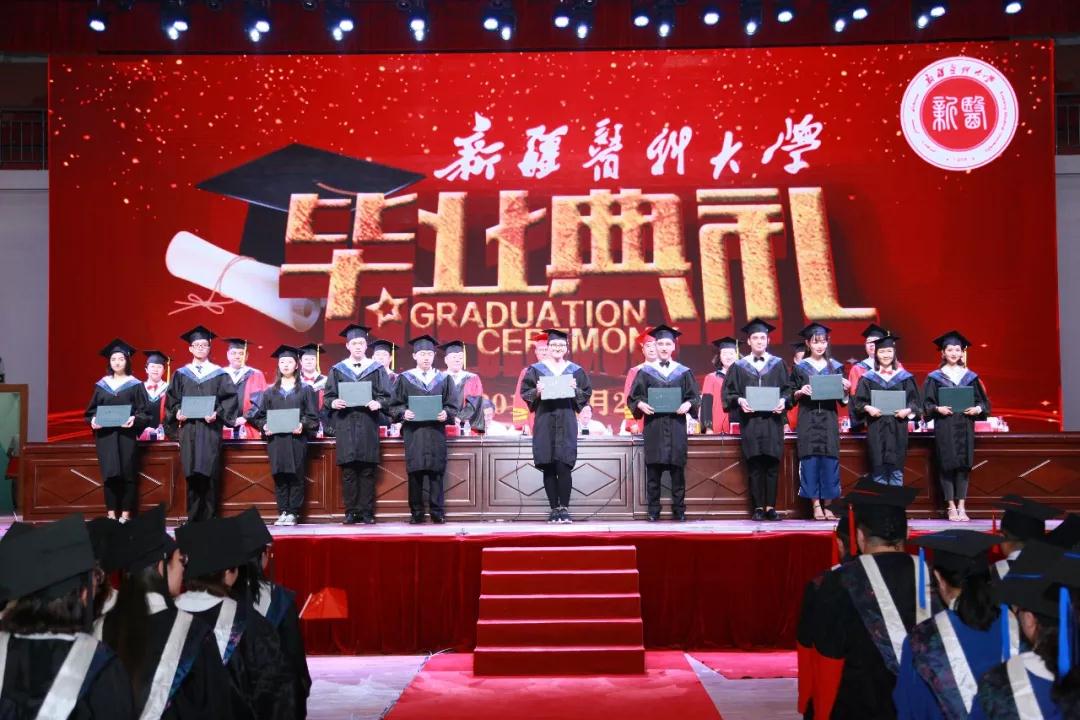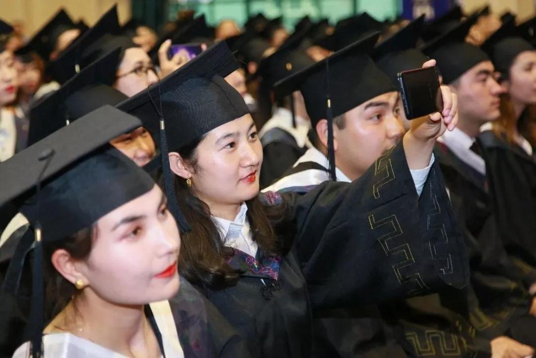 校党委常委、副校长再那吾东•玉山教授宣读《beat365在线唯一官网关于表彰2019届优秀毕业生的决定》。学校授予吴建江、迪丽胡麻•居来提等110名博士、硕士研究生;徐浩哲、开丽比努尔•阿布来提等303名本专科生;亚瑟•艾力•巴特等3名留学生“优秀毕业生”荣誉称号。校领导为毕业生颁奖。