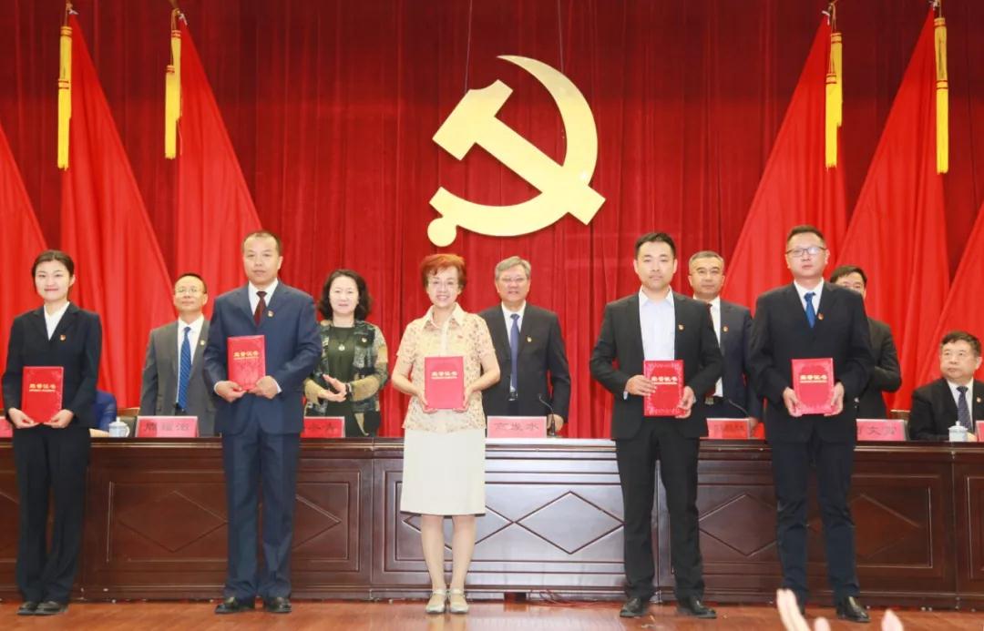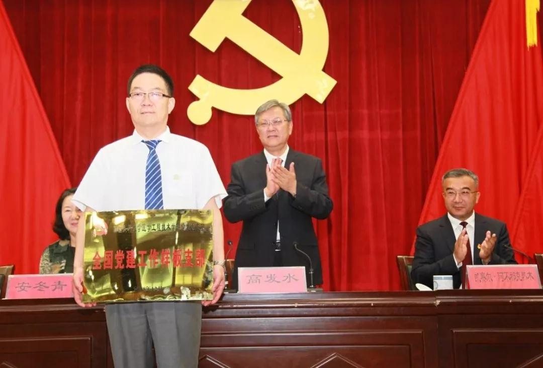 全体在家的校领导为受到表彰的优秀个人和先进基层党组织颁奖,并为“全国党建工作样板党支部”——医学工程技术学院学生党支部进行授牌。