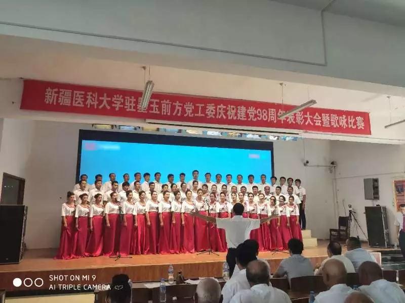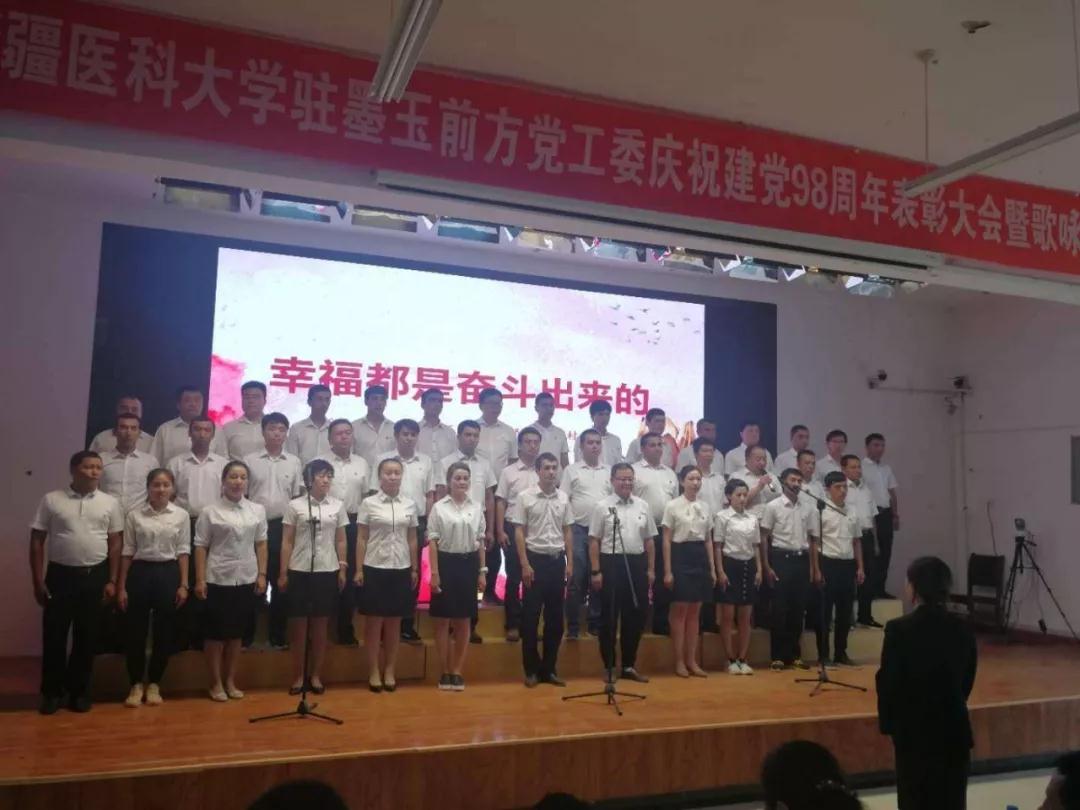 6月30日下午,beat365在线唯一官网驻墨玉县前方党工委在扎瓦镇英吾斯塘村举行庆祝建党98周年表彰大会暨歌咏比赛。beat3658支“访惠聚”驻村工作队、接待站、支教团、深度贫困村扶贫专干、扎瓦镇政府干部及各村村民党员代表共计500百余人参加。