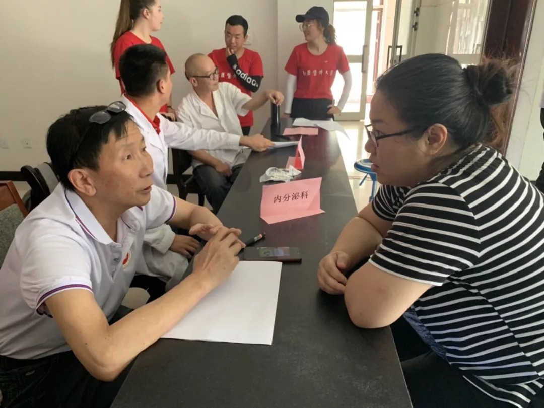 7月20日下午,社会实践一行人来到扎瓦镇政府,为政府工作人员免费测血压、发放健康宣传资料、对常见病、慢性病进行初步筛查、诊断。