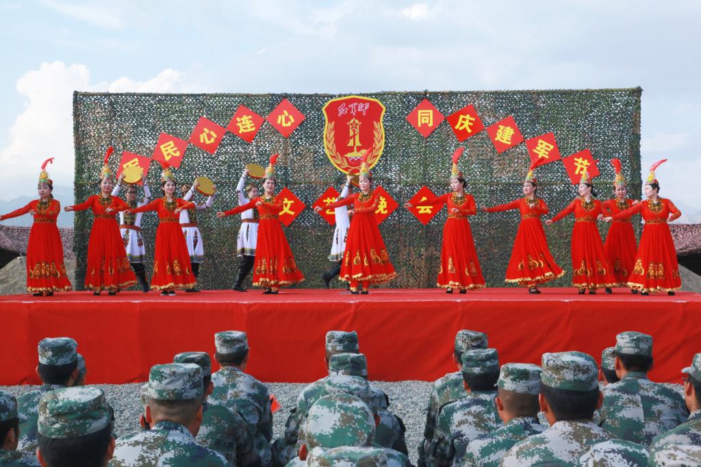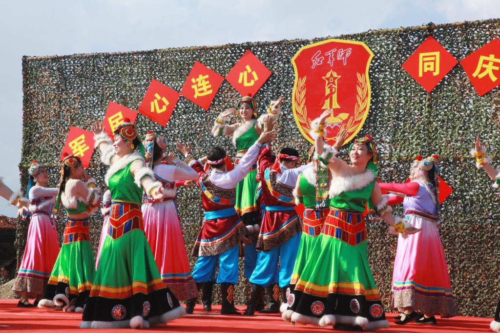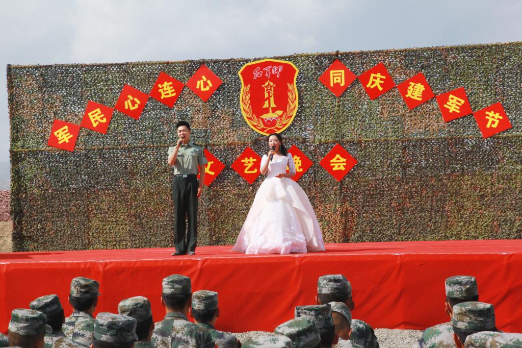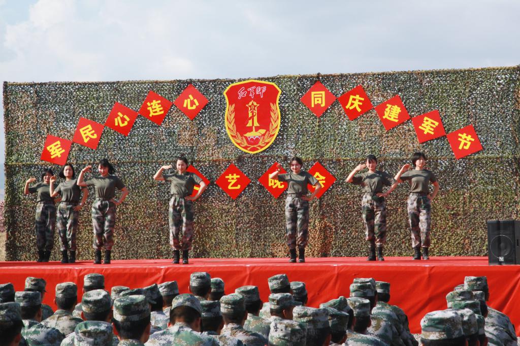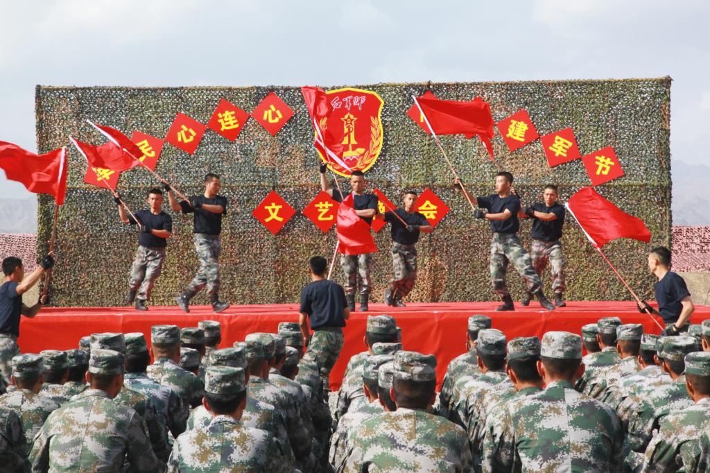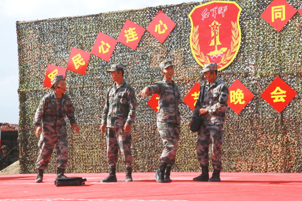 官兵们演出的旗舞《精忠报国》、歌伴舞《兄弟一条命》、小品《蜕变》和独唱《绿色军衣》,表达了中国军人的爱国忠诚、敢于担当、勇于奉献的优秀品质,展现了职业军人把青春热血投入保家卫国、守护人民的伟大事业中。