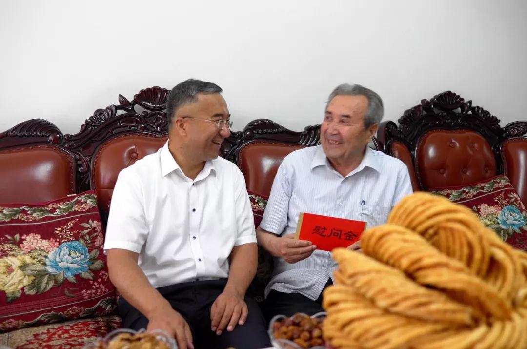 古尔邦节前夕,beat365在线唯一官网校领导高发水、凯赛尔·阿不都克热木、安冬青、贾文霄、周耀治、赵翠芳、李豫凯、王爱民等分别看望了肉孜·阿吉、帕丽达·阿布利孜、阿仙姑·哈斯木、买买提·亚森、艾沙·肉孜、苏菲亚、徐克尔汗·再丁、玛依拉·阿不都克力木、哈力旦·吐逊、阿布都艾尼·库吐鲁克、梅拉·哈万、阿曼古丽·木沙、买买提·肉孜、艾力曼·马合木提、米热古丽·买买提、晓开提、古力巴哈·买买提力、古丽巴哈尔·卡德尔、帕它木·莫合买提、尼加提·吐尔逊、艾尼娃尔·艾克木、巴吐尔·买买提明、安尼瓦尔·吾买尔、木妮热·木沙江、阿不都吉里力·阿不都克力木、凯赛尔江·多来提、吐尔逊·沙比尔、其满古丽·斯地克、尼格尔·买买提依明、古丽孜拉等老同志、老领导、老专家、“访惠聚”驻村工作队员家属以及困难职工,送去了节日的祝福,送去了党的关怀和温暖。