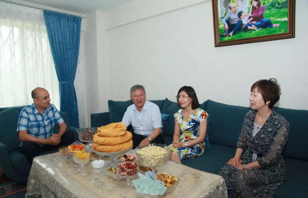 药学院的退休教授陈坚和中医学院退休教授苏菲亚是夫妻,凯赛尔·阿不都克热木校长来到家中,详细询问了两位老人身体健康状况和生活情况,八十多岁的苏菲亚教授患病已经行动不便,看到凯校长的到来非常高兴。八十多岁的陈坚教授依然精神矍铄,退而不休,至今仍在不断进行科研技术的转化等工作,在他的传帮带下,为学校培养了一大批药学专业骨干。凯赛尔校长高度评价二老为学校事业发展呕心沥血、兢兢业业,奉献了自己毕生的智慧和年华,正是前辈们的不懈努力,才能成就学校现在的辉煌,全校教职工都不会忘记老前辈们为学校发展做出的巨大贡献!
