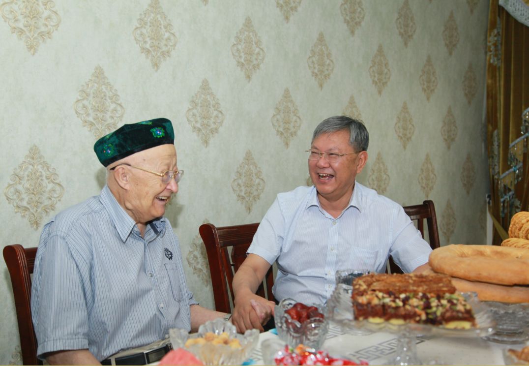 肉孜·阿吉教授得知高书记要来家里看望自己,一大早便亲自下厨煮了一锅香喷喷的手抓羊肉,老人虽已86岁高龄,但依然坚持每天读书看报,关注时事民生、关心学校发展。高书记对老人一生爱党爱国的家国情怀、为新疆医学教育事业无私奉献深表钦佩。他说,您是beat365在线唯一官网的宝贵财富,希望您老身体健康长寿,和新医的老一辈建设者们共同见证beat365在线唯一官网更加辉煌的未来。