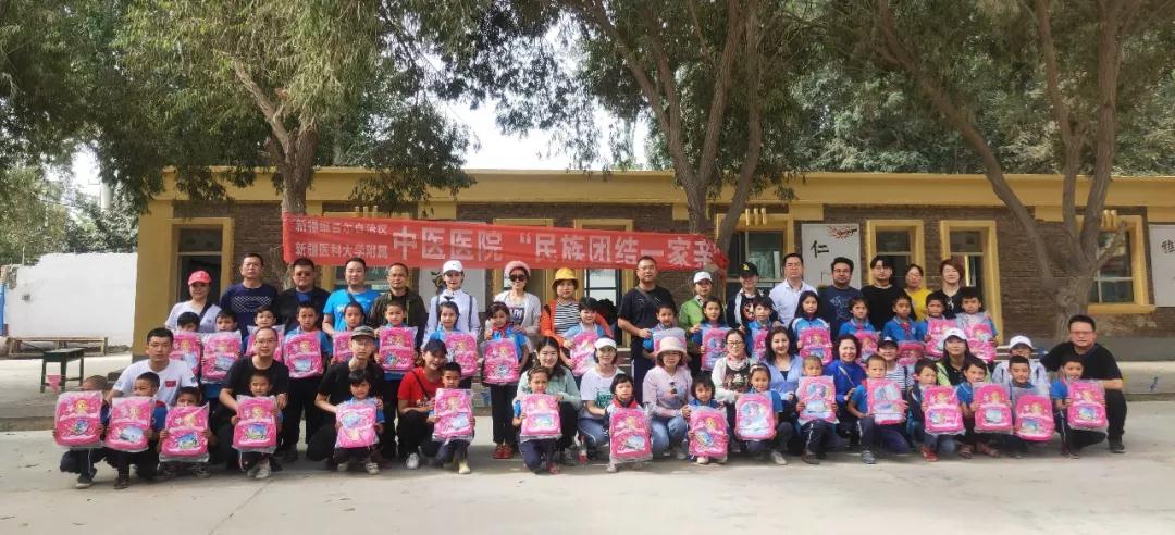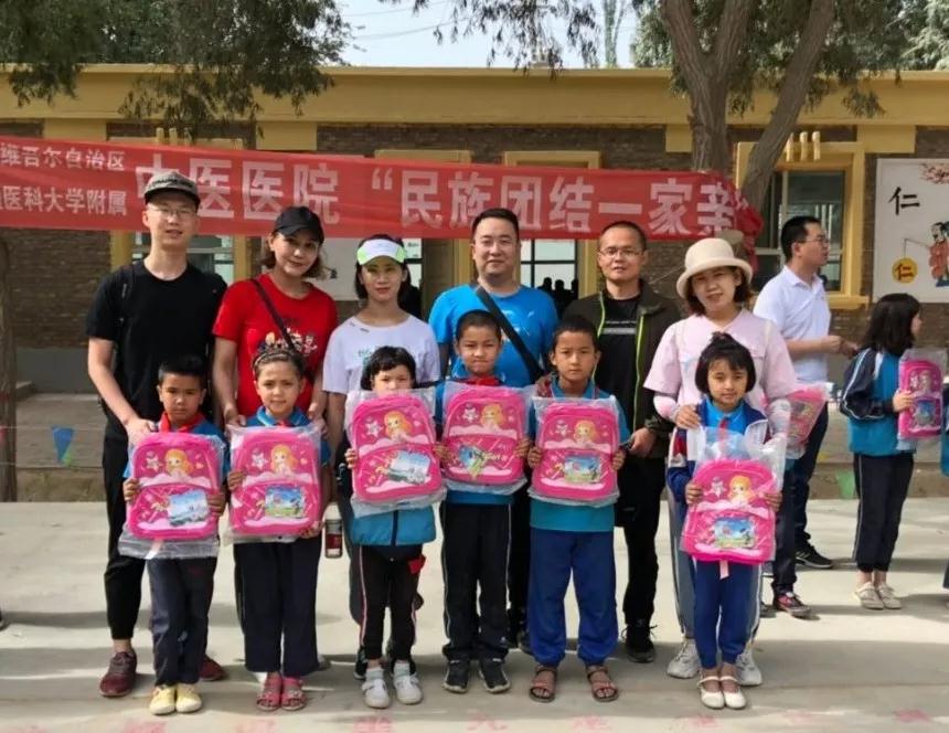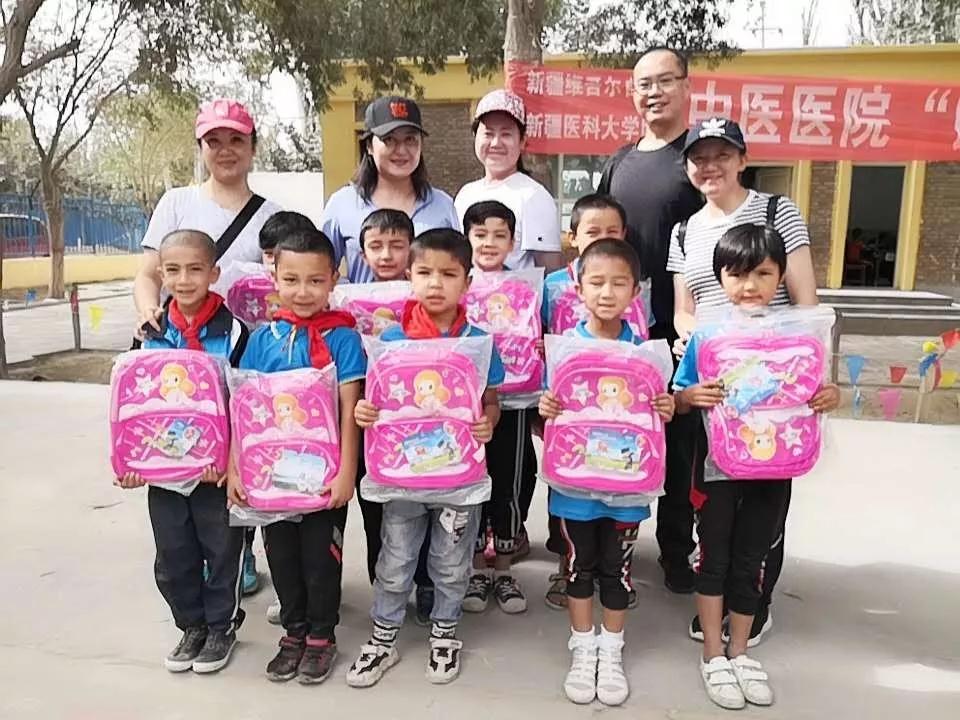 转眼又到开学季, 9月1日,beat365在线唯一官网附属中医医院的结亲干部们代表医院向和田地区墨玉县芒来乡阿克塔木村小学赠送了200个爱心书包。