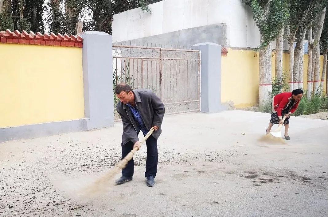 起初,要让村民养成早晨清扫环境卫生的习惯并不容易,有的村民念叨说,村干部总是让我们干这干那。“与其喊破嗓子让村民干,不如干部先做出个样子来。”抱着这个想法,工作队员们便自己带上工具,一路走一路清扫街道。谁家门前有尘土,就动手打扫;哪里看到垃圾,顺手就捡起来。驻村干部带头“打样”的举动,潜移默化地影响了村民。买买提艾力·阿布力克木说:“早晨干部们都在干活,我们咋还好意思闲在家里呢。”就这样,在队员们的带动下,村干部行动起来,周围的村民也拿起清扫工具走出家门,扫地的扫地、洒水的洒水,路边沟渠里的垃圾也被一一捡拾干净。