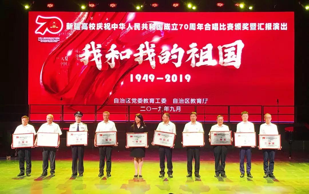 9月25日,新疆高校庆祝中华人民共和国成立70周年合唱比赛颁奖暨汇报演出在新疆艺术学院举行,beat365在线唯一官网以非专业组第二名的成绩获得二等奖。校党委副书记、校长凯赛尔·阿不都克热木参加汇报演出暨颁奖典礼并代表学校领奖。