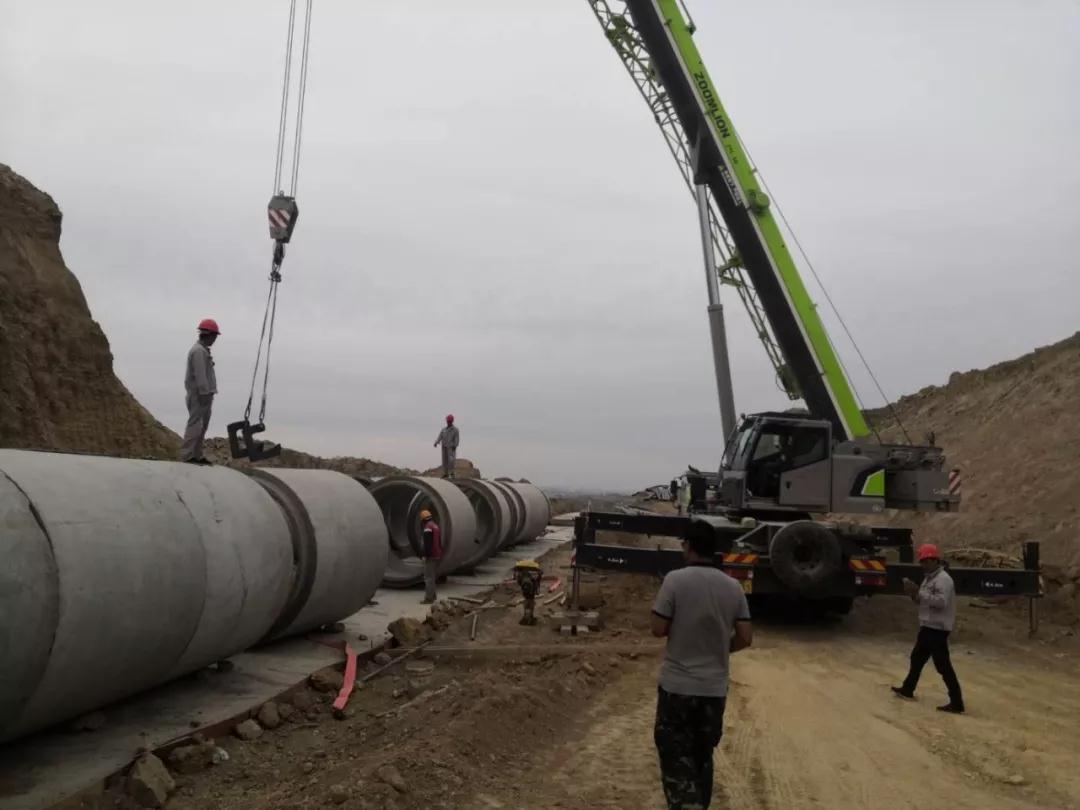 但是由于山形地貌,施工难度较大,由于山上便道条件差,材料运输机械难以进场。平时拉15方土的磅车,要想爬上山,最多只能拉8方。仅一根2米长的涵管就重达7吨左右,很多时候材料运到平地之后,还得分装倒运,把管子一根一根运到山上去。在山上铺一条管线,如果管沟挖深3米,就得在旁边修5米的施工通道,还要打出一个8米多的吊装平台。在平原地区常规的施工,在山上每一步都极为艰难。原计划5天打1200方的混凝土,结果6天才倒上来6车不到50方混凝土。在山上施工,所有的工作都在降效。工作推进比较难,山上没有水、没有电,施工作业的用水只能靠水车往上拉,用电只能靠发电机。