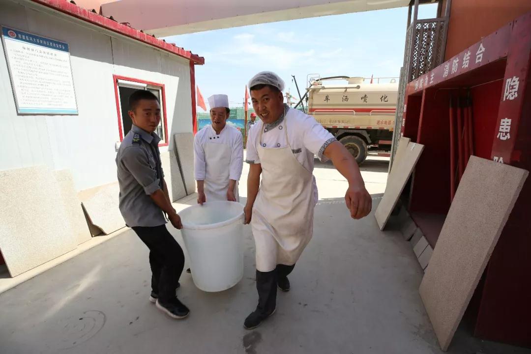 为解决700方/日的施工用水,吴越副指挥长带领工作人员日日奔波寻找水源。最终找到八道湾煤矿地底下的渗出水。水源找到后,能不能用?怎么引入?能用多长时间等一系列问题接踵而来。但吴越、夏青认为,只要思想不滑坡,办法总是比困难多,没有现成的经验借鉴,那就打破常规。他们首先采取水样送到自治区水务局进行水质检测,其次发挥集体智慧,想出用废旧的火车罐蓄施工用水的点子。又是吴越亲自带人两次到九沟十八坡花费20多万元买了十个火车罐。水样的各项指标符合,十个火车罐也齐涮涮地立在山顶。临时生活用水和施工用水在建设过程中得以妥善解决。