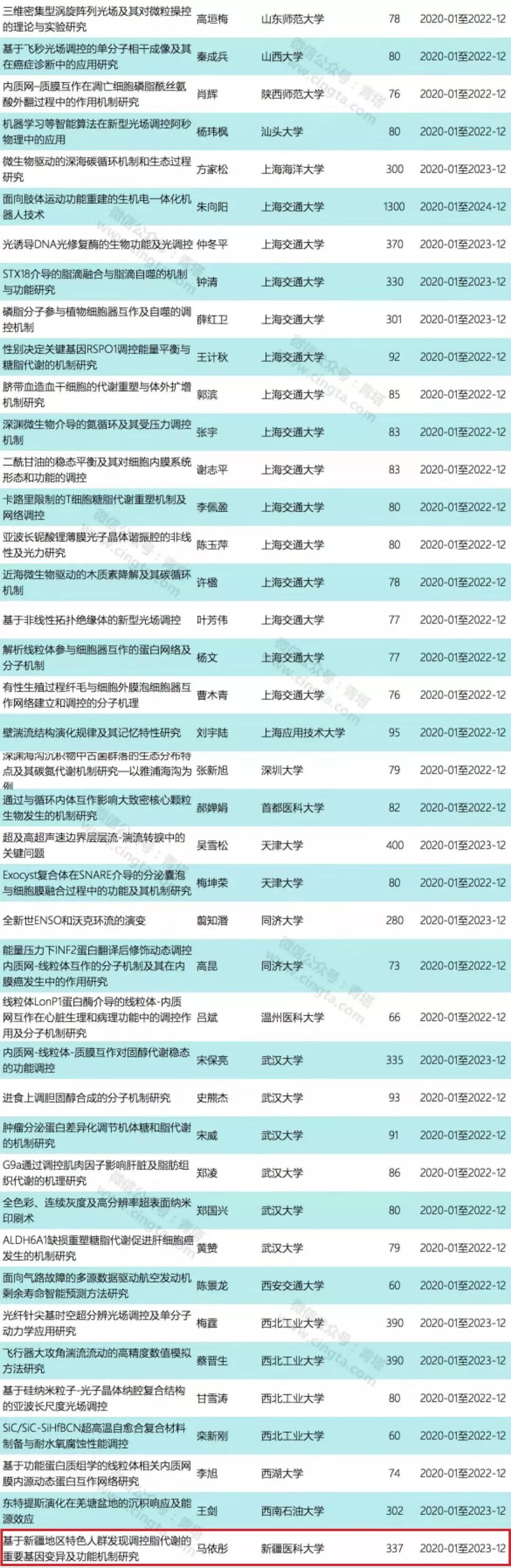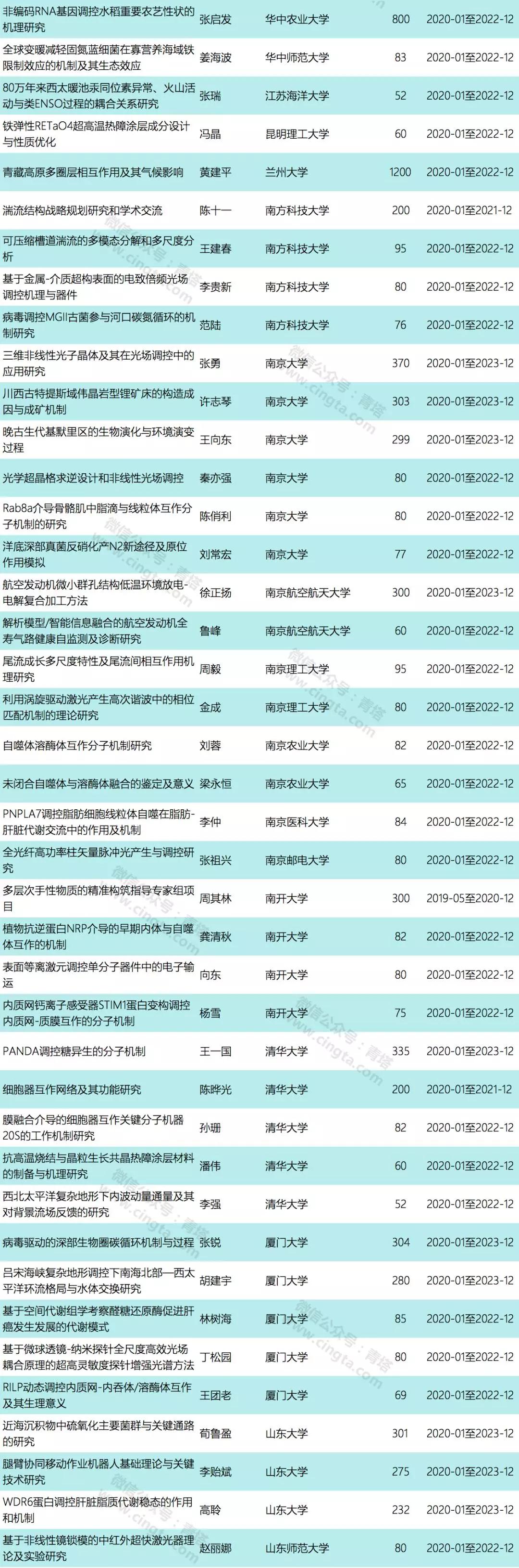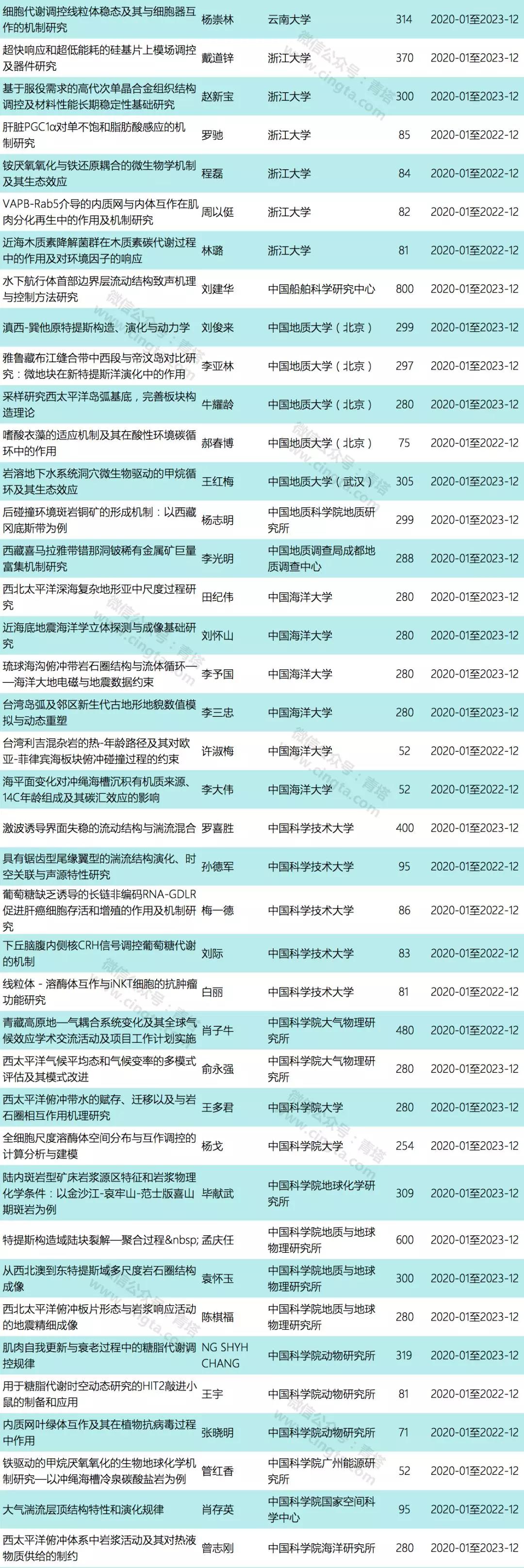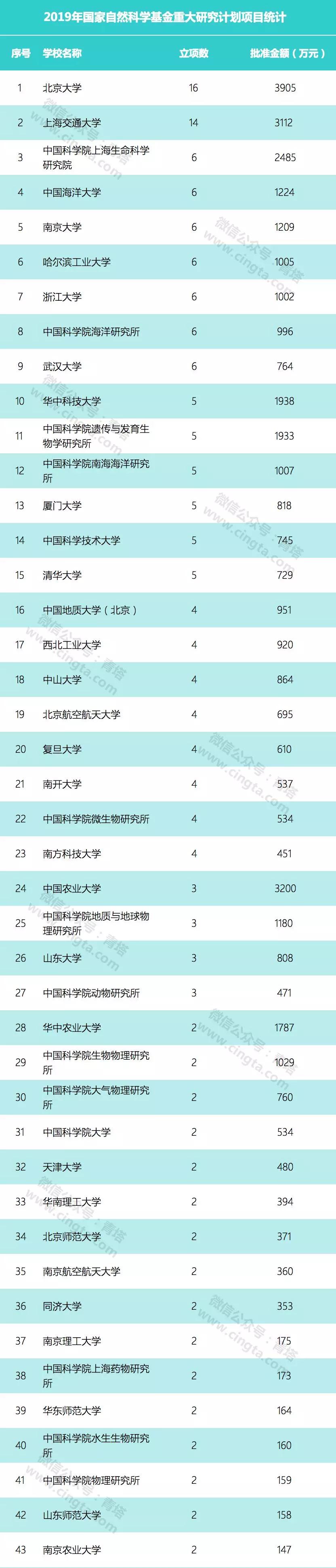 中国科学院上海生命科学研究院、中国海洋大学、南京大学、哈尔滨工业大学、浙江大学、中国科学院海洋研究所、武汉大学等单位各有6个项目获批,是本次获批项目较多的单位。