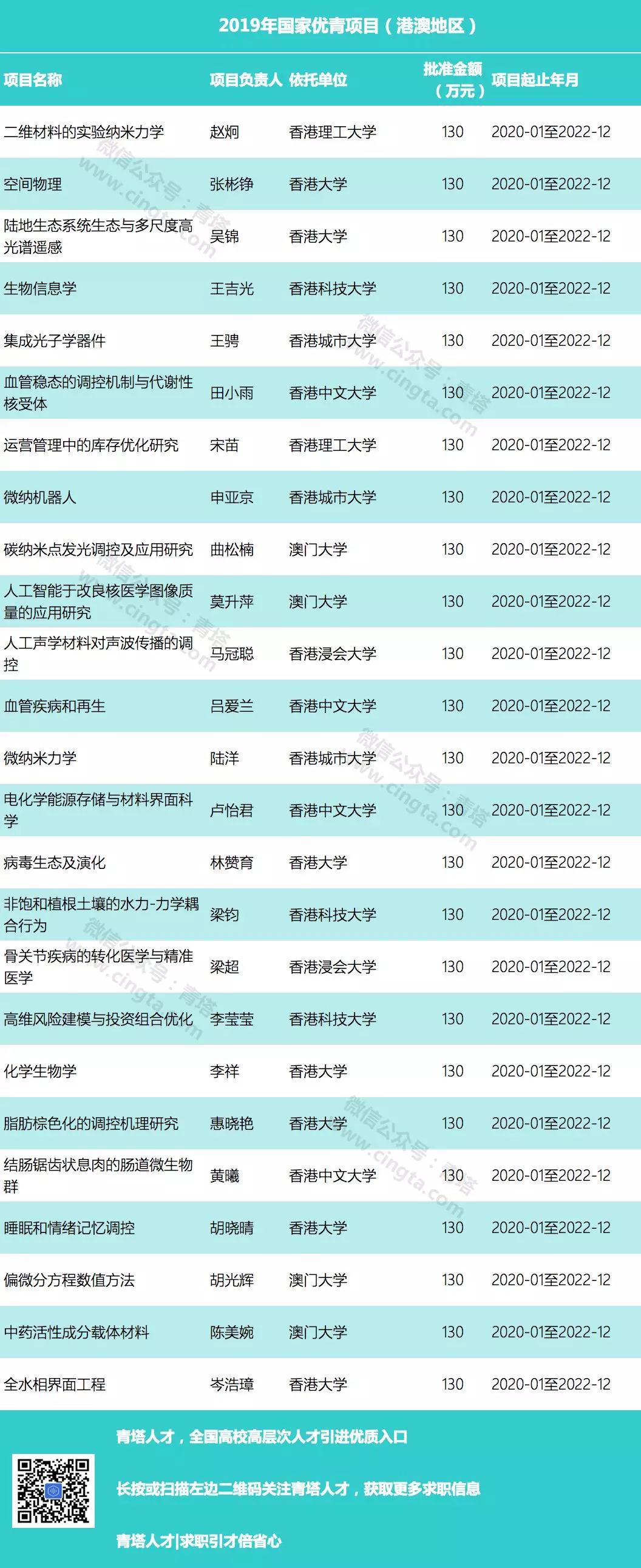 国家优青项目(港澳地区)
