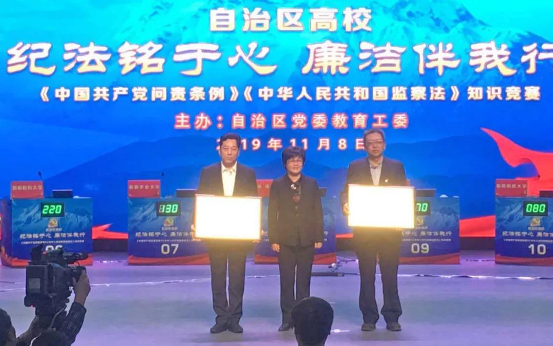 在11月8日举行的自治区高校“纪法铭于心 廉洁伴我行”知识竞赛上,15所高校代表队同台竞技,共展风采。beat365在线唯一官网代表队经过激烈的角逐荣获二等奖,beat36535名纪检监察干部和职工代表在现场观摩了竞赛。