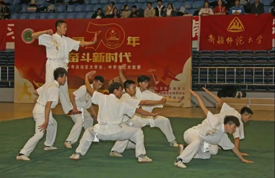 11月15日到17日,2019年自治区大学生、中学生武术联赛在beat365在线唯一官网体育馆举办。本次比赛级别为自治区级,主办单位为新疆维吾尔自治区教育厅、新疆学生体育协会,承办单位为beat365在线唯一官网。有参赛学校31所,其中13所高校和18所中学,参赛队员共329人。beat365共获得21枚奖牌,大学生甲组集体拳术第一、大学生甲组集体器械第二。个人奖第一7个,第二7个,第三5个,第四3个,第五1个,第六1个。