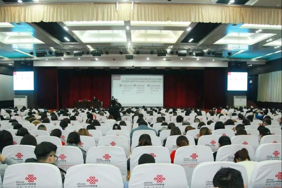 11月21日下午,自治区教育系统学习贯彻党的十九届四中全会精神大宣讲活动走进beat365在线唯一官网。自治区宣讲团成员、新疆大学马克思主义学院党委书记、副院长张家飞博士为800名新医师生作党的十九届四中全会精神专题宣讲。
