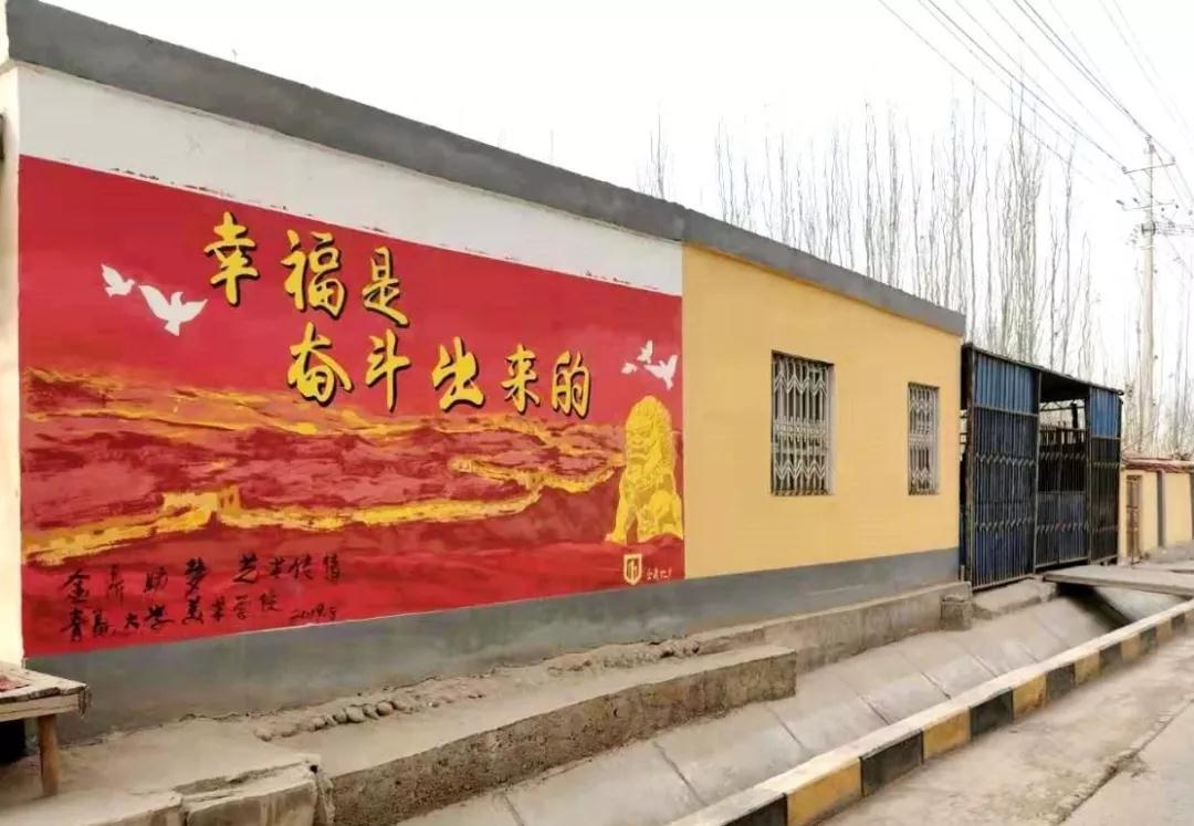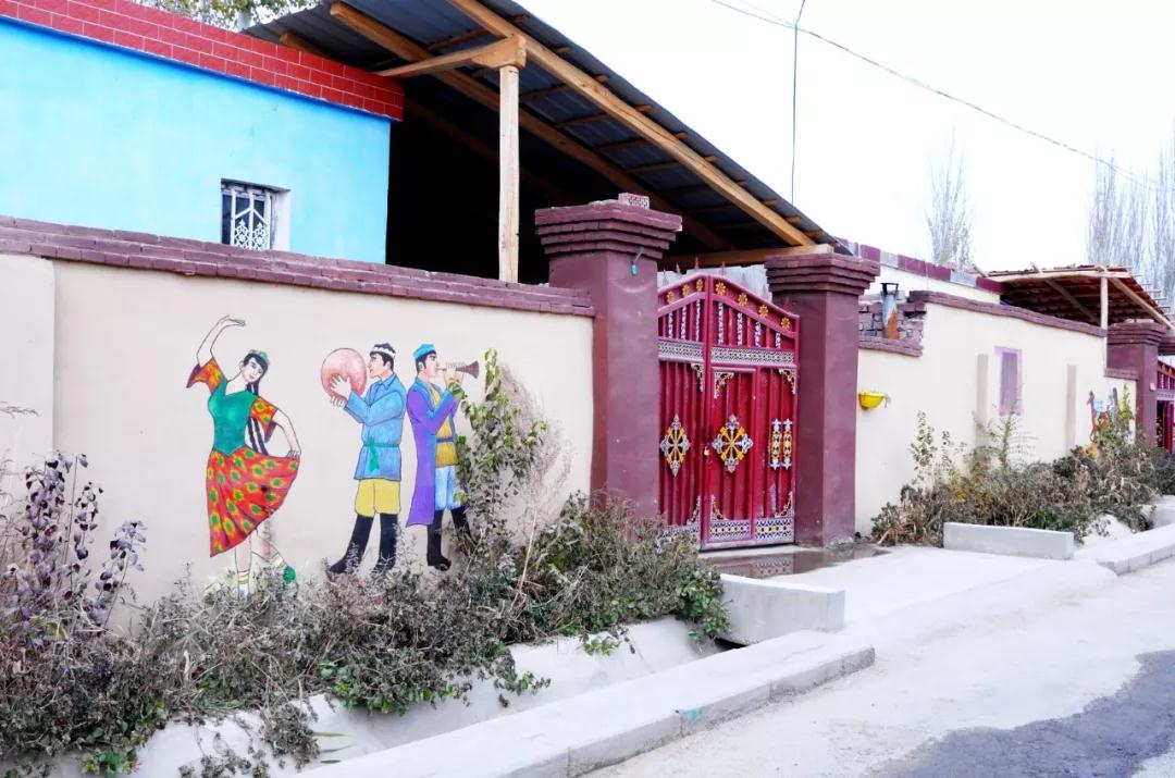 在离英吾斯塘村村委会不远的墙面上,一幅颜色鲜艳的彩绘格外醒目,画上写着一句“幸福是奋斗出来的”正是村民们生活的真实写照。