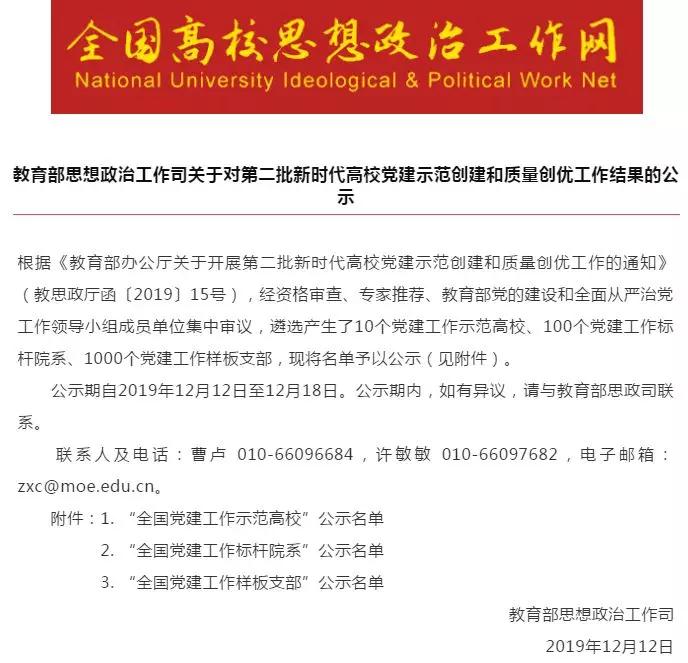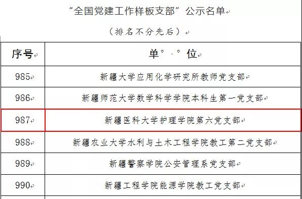 12月12日,教育部思想政治工作司发布了第二批《关于对新时代高校党建示范创建和质量创优工作评审结果的公示》,beat365在线唯一官网护理学院第六党支部榜上有名,获评“全国党建工作样板支部”。