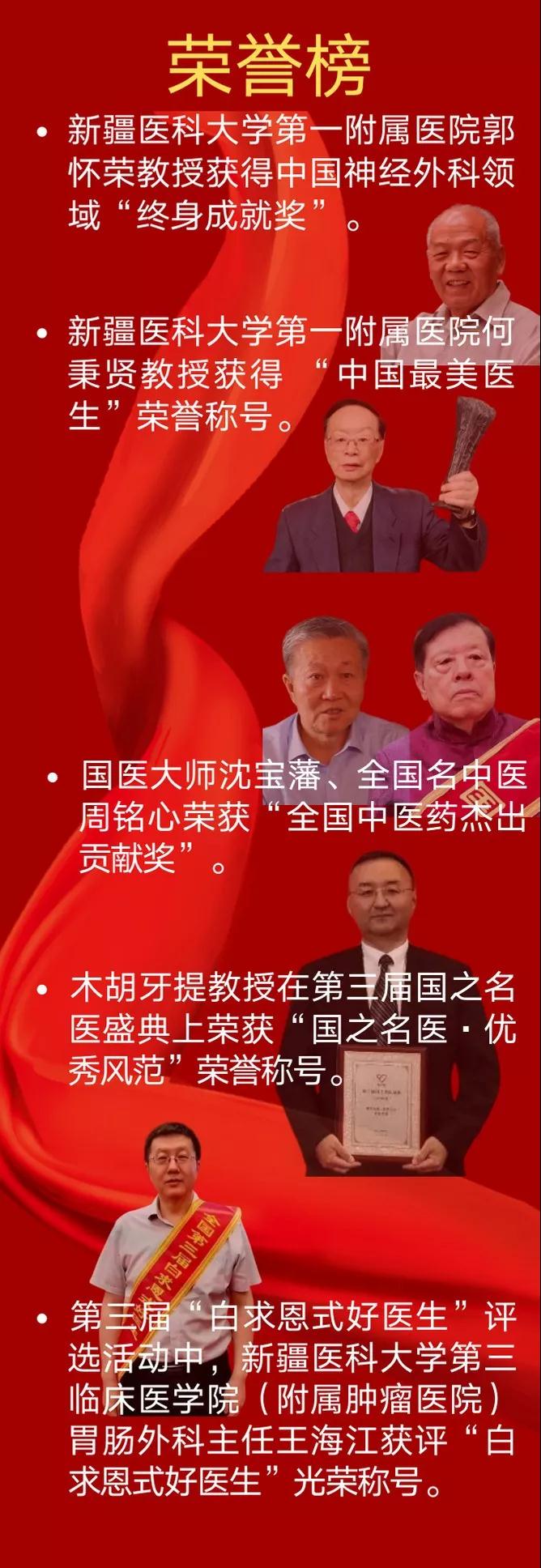 这一年,“统筹布局”、“优化配置”是新医人聚焦医疗改革发展的关键词;“盘活资源”、“全面提升”是新医人改进医疗服务的着力点。一年来,校党委谋篇布局、运筹帷幄,办医空间进一步释放,医疗资源有序整合,精尖人才获得发展,七所附属医院力量壮大,八大医学中心羽翼丰满。新医人为“健康新疆”建设和服务“一带一路”展现了担当精神,以“咬定青山不放松、不达目的不罢休”的劲头,努力赢得最大公约数,奋力画出最大同心圆。