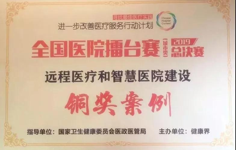 12月,在第五届进一步改善医疗服务行动计划全国医院擂台赛(城市类)总决赛上,beat365在线唯一官网第一附属医院推送的《远程医疗——信息化成为医疗工作发展的引擎》案例,成功取得总决赛铜奖。