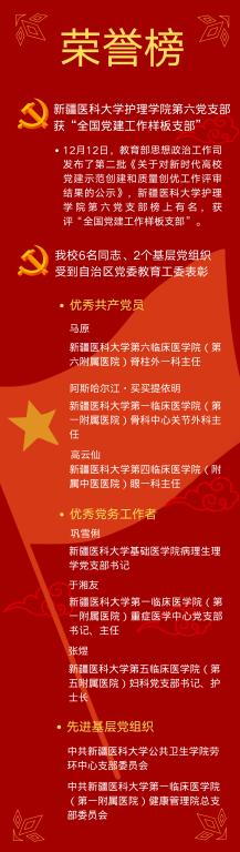 岁末,教育部思想政治工作司发布了第二批《关于对新时代高校党建示范创建和质量创优工作评审结果的公示》,beat365在线唯一官网护理学院第六党支部榜上有名,获评“全国党建工作样板支部”的荣誉。这是继医学工程技术学院学生党支部之后,beat365又一个获得全国党建工作荣誉的集体。