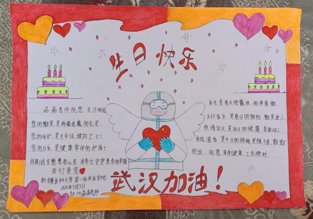 第一临床医学院的同学们坚持用画画的方式为自己的老师和医护人员送上生日祝福。他们总说医护人员很辛苦,送一点有“温度”有“心”的礼物很有必要。这次医疗队员们想对后方的师生们说声感谢: