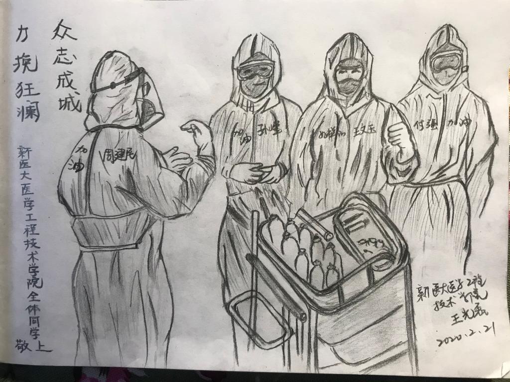 人们常说存在就是一种美好。在这个全民抗疫的特殊时期,后方有一群可爱的新医学子,他们用自己手中的铅笔,为新医大最美逆行者们“书写”最美的新医故事。