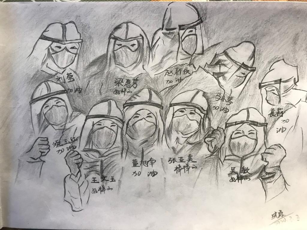 感谢你们没日没夜的坚持创作,为前线的老师们画像,为前线的老师们祝福。让一张张黑白的素描有了温度,有了颜色。