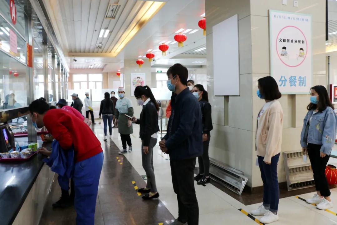 为避免校园内人员过度聚集,学校在教学活动和食堂就餐中均采取了分时错峰的办法,分校区、分教学区域、分学院错峰上下课,错时错峰进食堂就餐,并严格实行分餐制。学校后勤部门提前购进了新鲜食材,积极储备粮油蔬菜、肉禽蛋奶、副食品、一次性饭盒等生活物资,切实保证开学师生员工的用餐需要。同时加强食品安全管理,严把食品卫生关。
