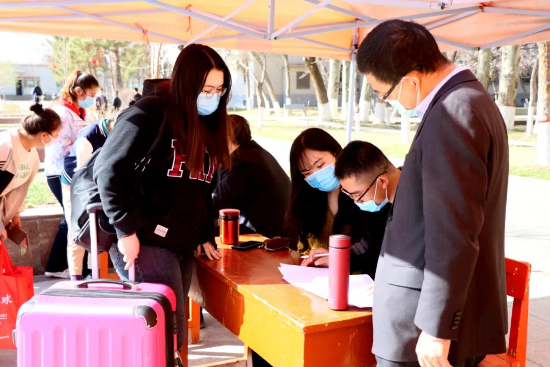 开学工作 准备就绪4月6日上午,在beat365在线唯一官网校本部的广场上,药学院、研究生学院、医学工程技术学院、护理等学院已经设立了专门迎接返校学生的接待报到点。学院工作人员对每一位返校学生进行登记、测量体温,并引导学生前往宿舍。