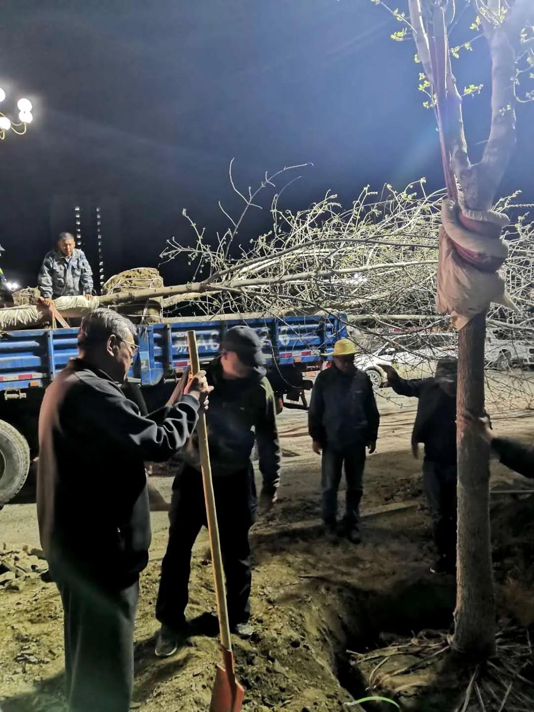 15天的植绿会战,新医人自上而下,团结一心、拼搏奋斗的场面时时让人动容。如今的新校区正大门,8棵傲骄挺拔的小叶白蜡立在大门两侧,像极了8位忠于职守的哨兵,守着自家的大门。但种下这8棵树却异常艰难,每棵树4吨重、高12米、根部球径1.5米,需要挖出直径2米、深1.8米的坑种植。校党委书记高发水现场亲自指挥,从树木的运输、起吊、种植、土肥配比、培土浇灌,一直忙到凌晨3点。看着8棵小叶白蜡妥妥地安了家,高书记、周耀治副校长、李豫凯常委和王宏伟、韩生辉、侍相兵才拖着疲惫的身体回到宿舍,顾不得洗漱,倒头就睡,短暂的休息后又重启忙碌的一天。