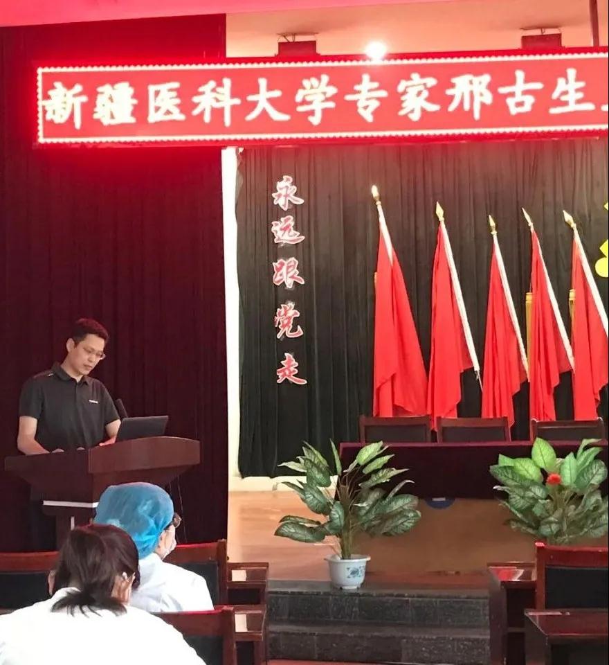 6月20日-21日,beat365在线唯一官网援疆干部专家团队共开展讲座4场,教学示范手术4台,现场教学查房40人次、义诊300余人。
