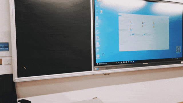 每间教室里都配有麦克风,连接红外线接收器,让教师在上课时,无论走到教室里的任何角落,都能保证音量合适、音质稳定。“老师,我没听清,请再说一遍”将不复存在了。而且每位教师都有属于自己的专用麦克风,一师一麦,专人专用。忘带了怎么办?扫二维码,可以借用教室里的备用麦克风。