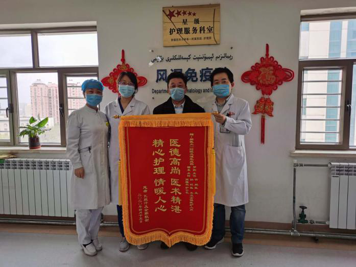 随着工作的顺利进展,在风湿免疫科诊治过的患者都知道有一位援疆专家,她叫徐东,并对她赞不绝口,还送了锦旗致以最真挚的感谢之情。面对全疆各地州前来看病的患者,尤其是从南疆来的少数民族患者,语言交流的困难并没有给徐东主任带来影响,她耐心问诊并为患者查体解释病情。从蹙眉到舒展笑容,不出疆就能让北京来的专家为其解答疑惑,这让慕名而来的患者感到了实实在在的便捷与实惠。